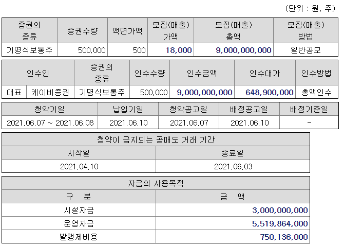 ✔ 공모주식수 : 500,000주