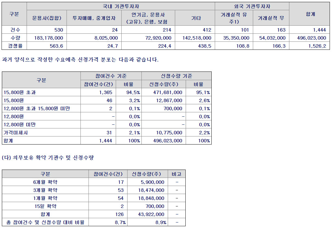 ✔ 수요예측 경쟁률 : 1,526.2 대 1