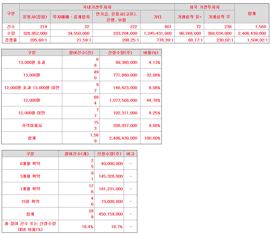 1개월, 3개월 확약 신청 수량이 많은 편이네요.
