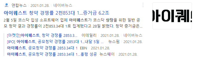제가 1월에 아이퀘스트 공모주 청약할 수 있는 기회가 있었다면, 꼭 했을 것 같아요.