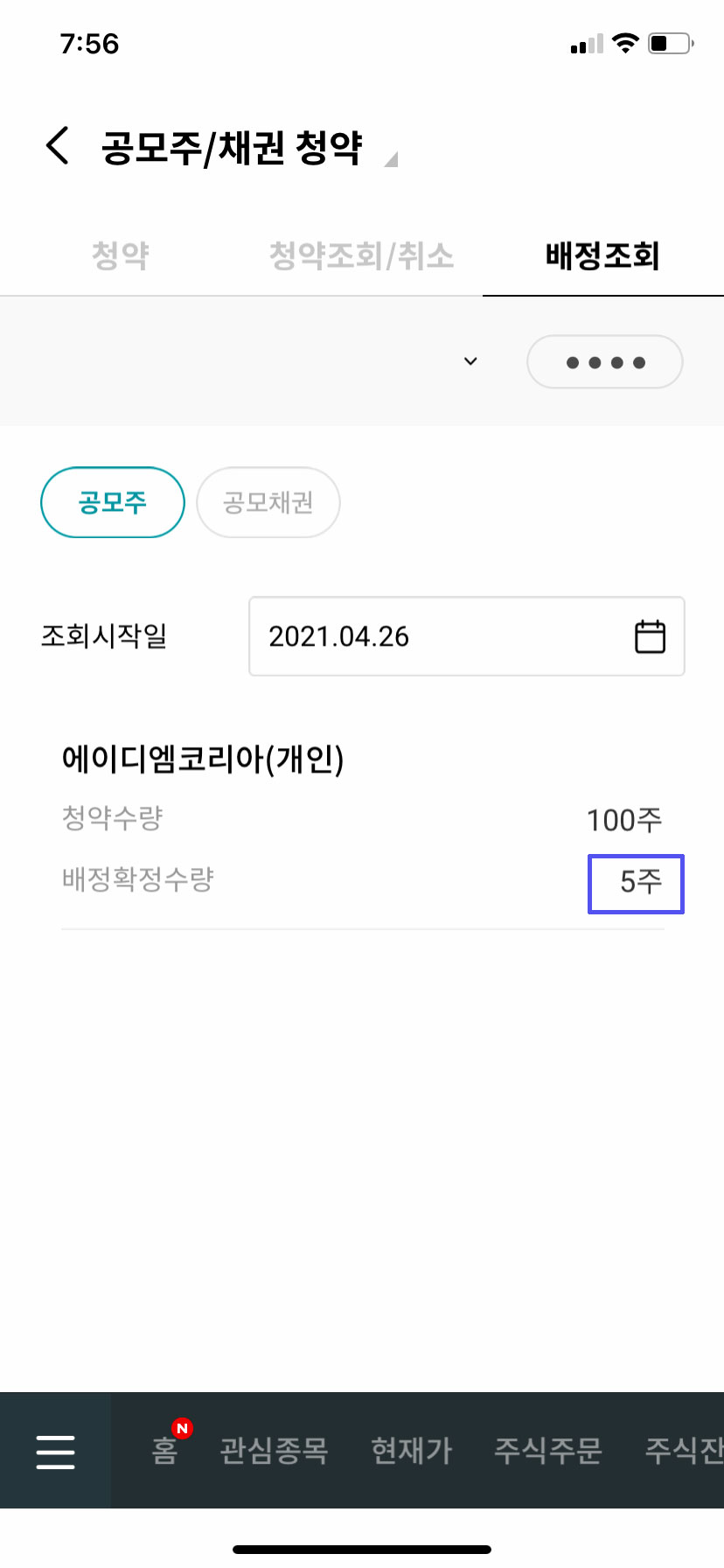 균등으로 하셨던 분들은 배정물량이 4.9주를 예상한다고 한다는 글을 봤는데, 결과가 벌써 나왔습니다.(대박💛)