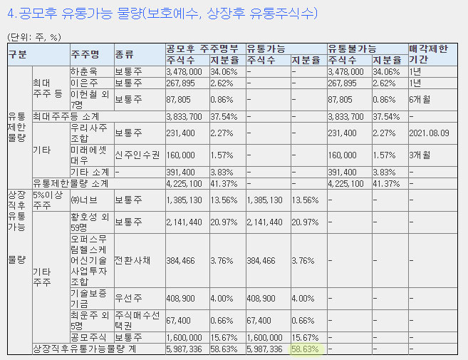 ✔유통 가능 물량 : 58.63%