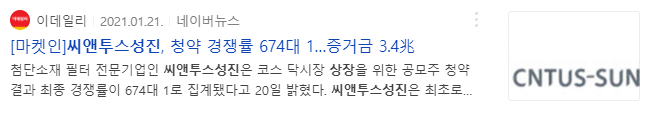 2021년 1월 공모주 청약 - 씨앤투스성진 리뷰