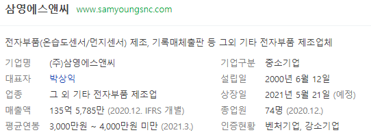 | 샘씨엔에스 주식 공모주 청약 공부하기💪🏻 / 기업 분석, 확정 공모가, 수요예측, 할인율, 의무보유확약 (0) | 2021.05.07 |