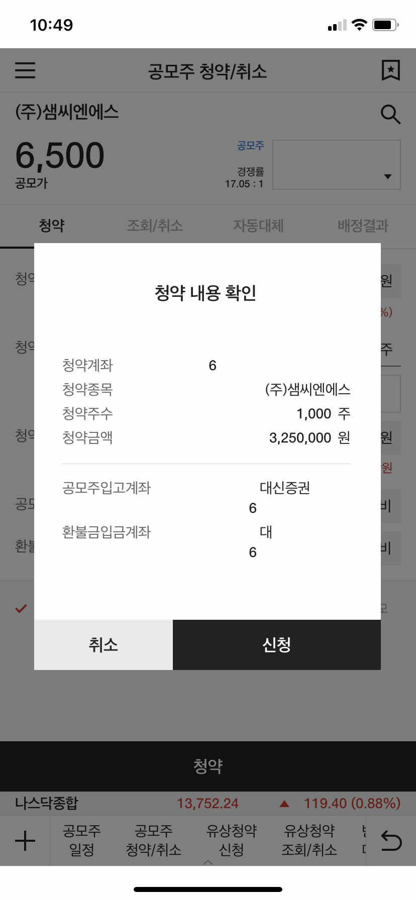 대신증권에서는 처음 청약해보는 거라